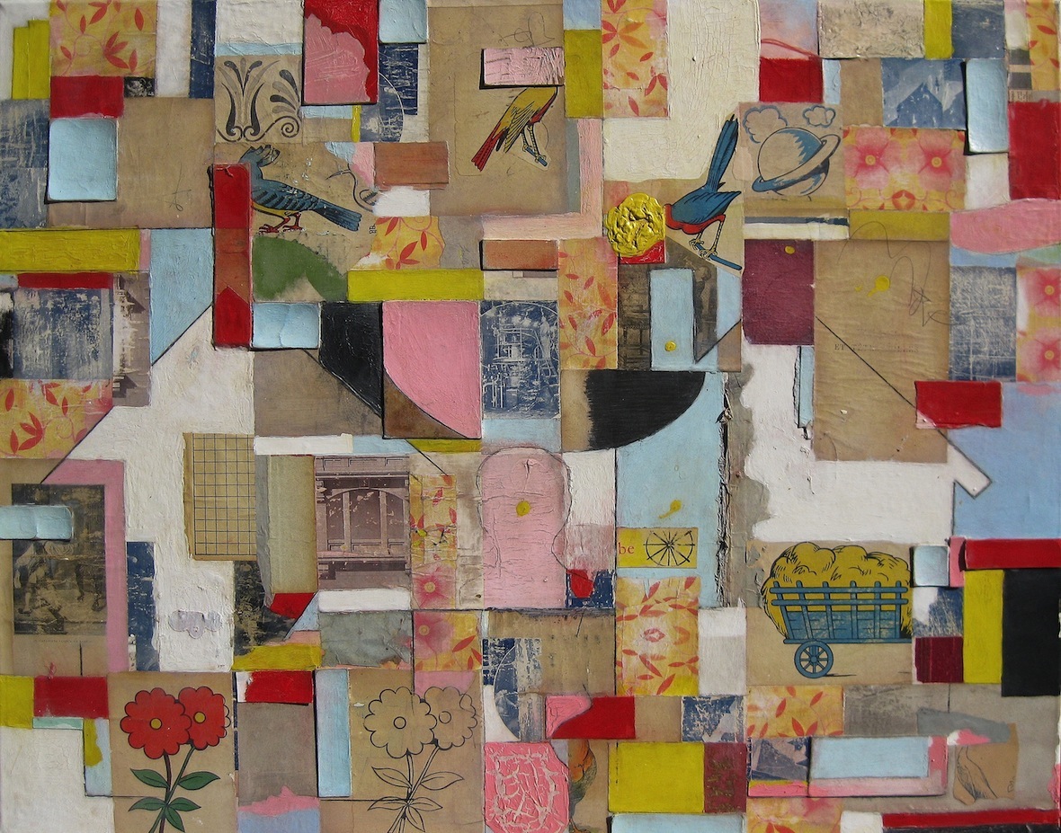 WHAT, 2009. Collage on board (Mailed). Included in the show.