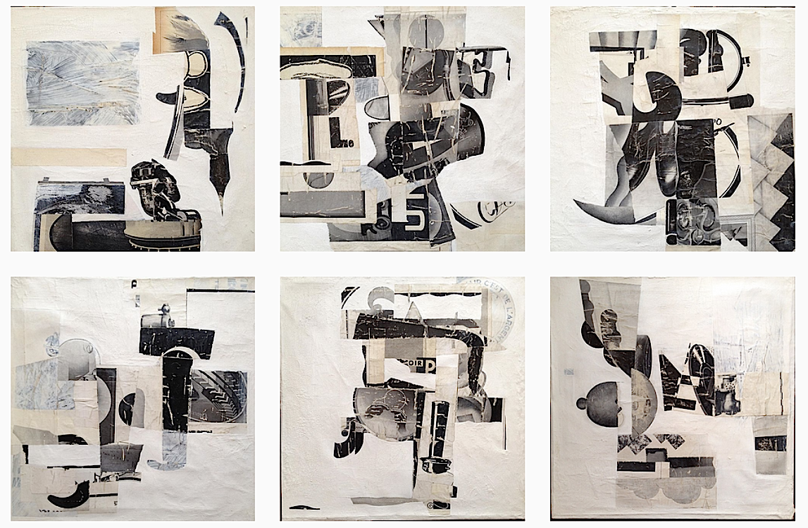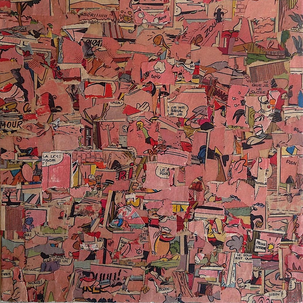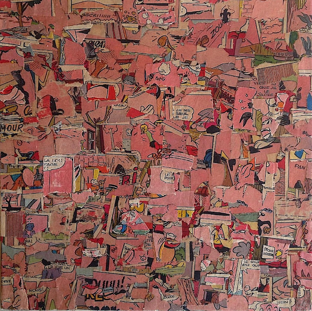 A new series of collage works on canvas decrypting and recrypting bande dessinée printed material from the early 1960s and 1970s is now on view at Nisa Touchon Fine Art, in Santa Fe, New Mexico. each work is 30 x 30 cm on canvas, dated and signed 2015.