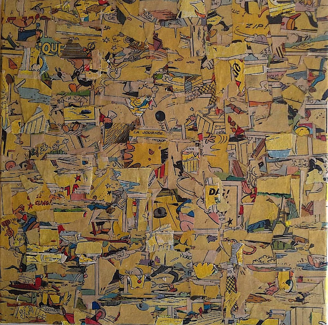 A new series of collage works on canvas decrypting and recrypting bande dessinée printed material from the early 1960s and 1970s is now on view at Nisa Touchon Fine Art, in Santa Fe, New Mexico.  each work is 30 x 30 cm on canvas, dated and signed 2015.